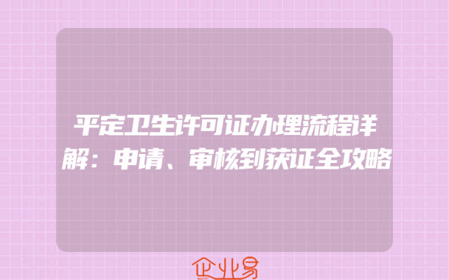 - 平定卫生许可证办理流程详解:申请、审核到获证全攻略