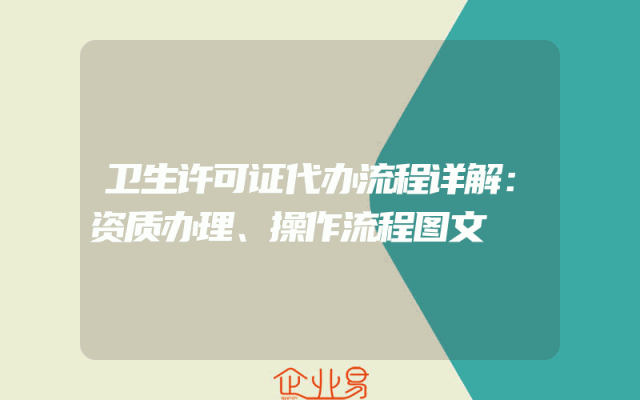 - 卫生许可证代办流程详解:资质办理、操作流程图文