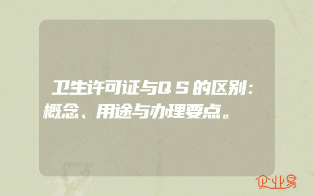 - 卫生许可证与QS的区别:概念、用途与办理要点。