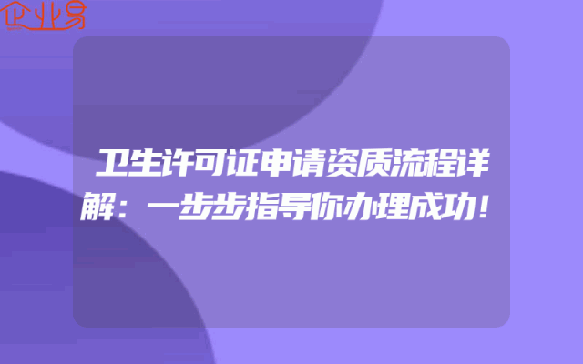 - 卫生许可证申请资质流程详解:一步步指导你办理成功!