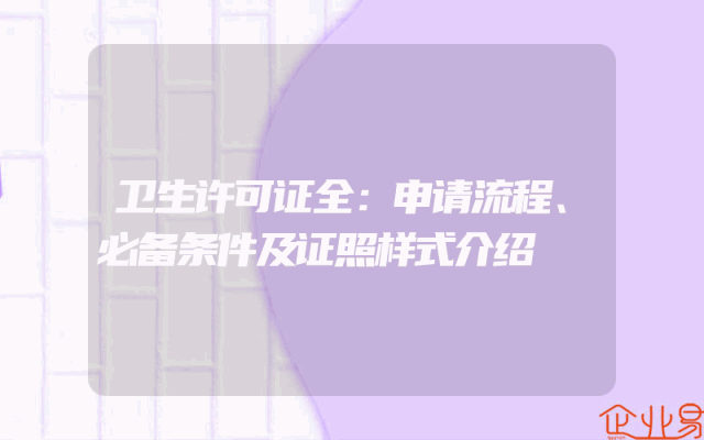 - 卫生许可证全:申请流程、必备条件及证照样式介绍