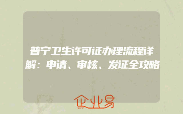 - 普宁卫生许可证办理流程详解:申请、审核、发证全攻略