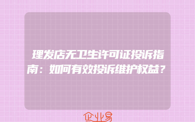 - 理发店无卫生许可证投诉指南:如何有效投诉维护权益?
