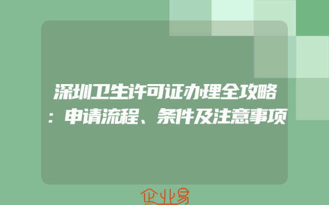 - 深圳卫生许可证办理全攻略:申请流程、条件及注意事项