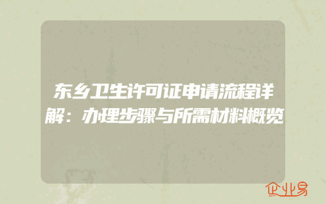 - 东乡卫生许可证申请流程详解:办理步骤与所需材料概览