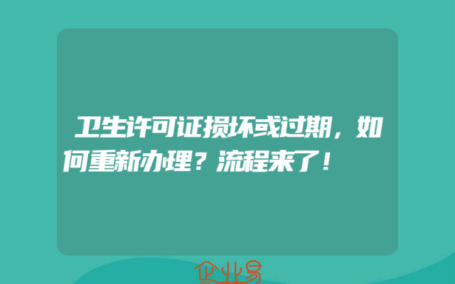 - 卫生许可证损坏或过期,如何重新办理?流程来了!