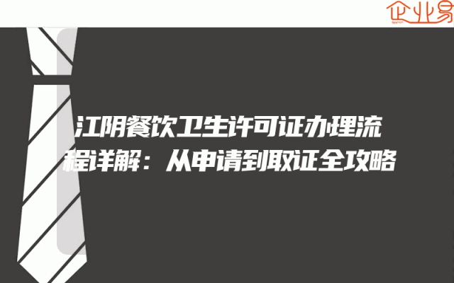 - 江阴餐饮卫生许可证办理流程详解:从申请到取证全攻略