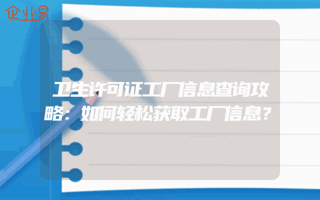 - 卫生许可证工厂信息查询攻略:如何轻松获取工厂信息?