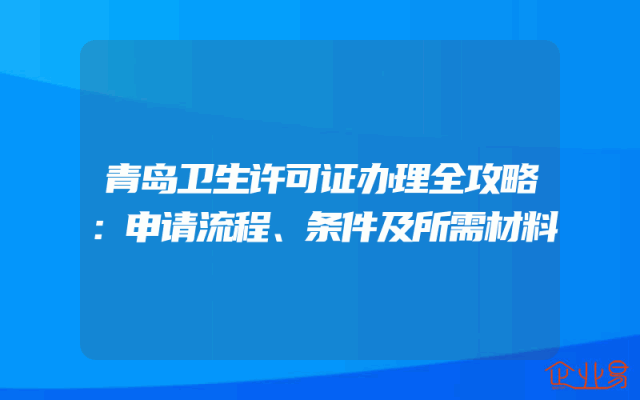 - 青岛卫生许可证办理全攻略:申请流程、条件及所需材料