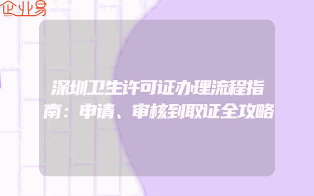 - 深圳卫生许可证办理流程指南:申请、审核到取证全攻略