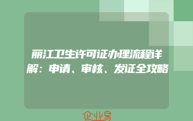 - 丽江卫生许可证办理流程详解:申请、审核、发证全攻略