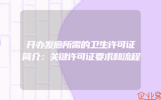 - 开办发廊所需的卫生许可证简介:关键许可证要求和流程