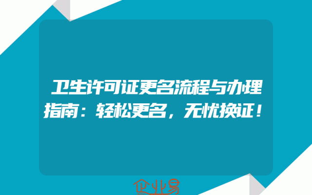 - 卫生许可证更名流程与办理指南:轻松更名,无忧换证!