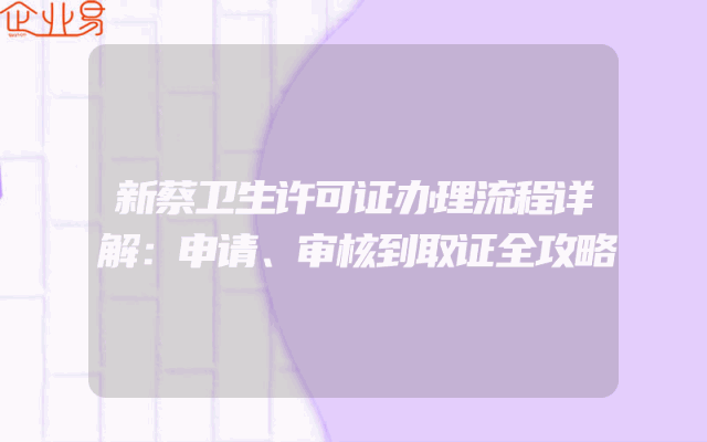 - 新蔡卫生许可证办理流程详解:申请、审核到取证全攻略