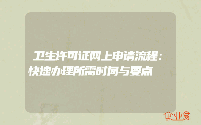 - 卫生许可证网上申请流程:快速办理所需时间与要点