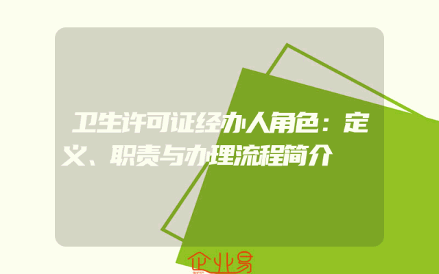 - 卫生许可证经办人角色:定义、职责与办理流程简介
