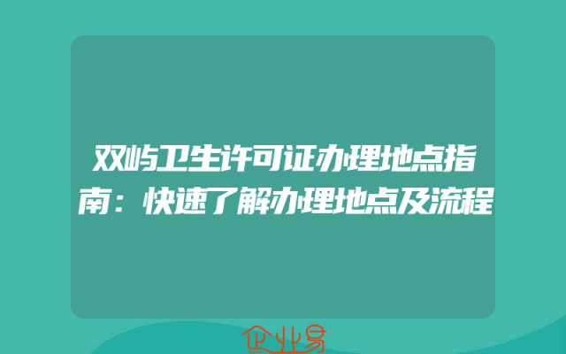 - 双屿卫生许可证办理地点指南:快速了解办理地点及流程