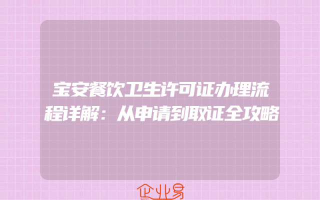- 宝安餐饮卫生许可证办理流程详解:从申请到取证全攻略