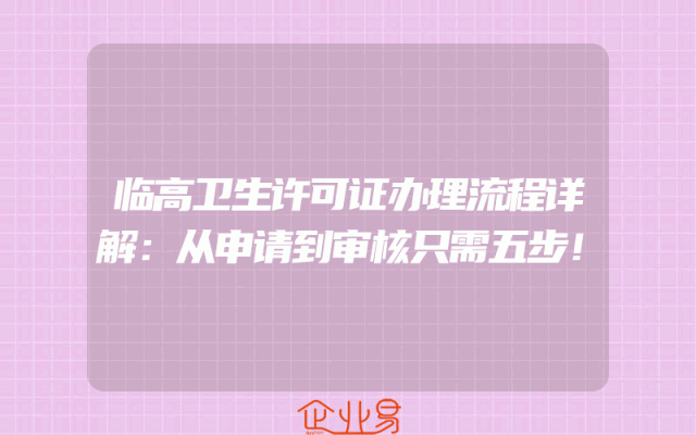- 临高卫生许可证办理流程详解:从申请到审核只需五步!