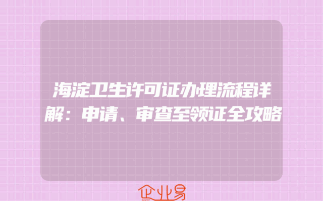 - 海淀卫生许可证办理流程详解:申请、审查至领证全攻略