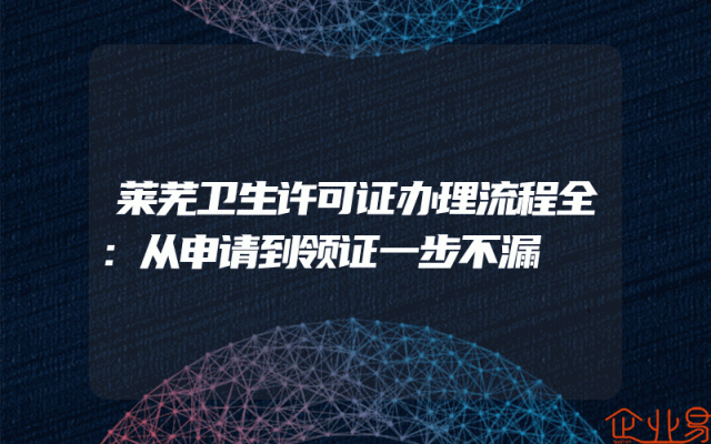 - 莱芜卫生许可证办理流程全:从申请到领证一步不漏