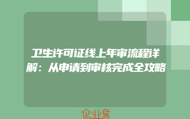 - 卫生许可证线上年审流程详解:从申请到审核完成全攻略