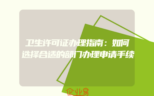 - 卫生许可证办理指南:如何选择合适的部门办理申请手续