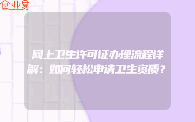 - 网上卫生许可证办理流程详解:如何轻松申请卫生资质?