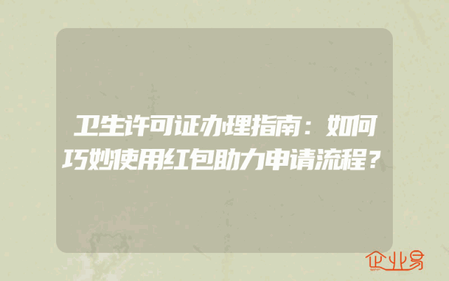 - 卫生许可证办理指南:如何巧妙使用红包助力申请流程?