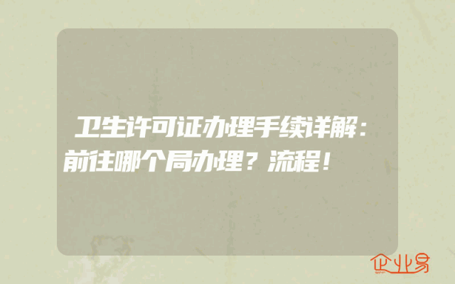 - 卫生许可证办理手续详解:前往哪个局办理?流程!