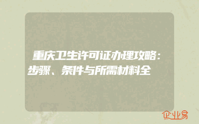 - 重庆卫生许可证办理攻略:步骤、条件与所需材料全