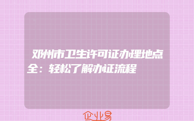 - 邓州市卫生许可证办理地点全:轻松了解办证流程