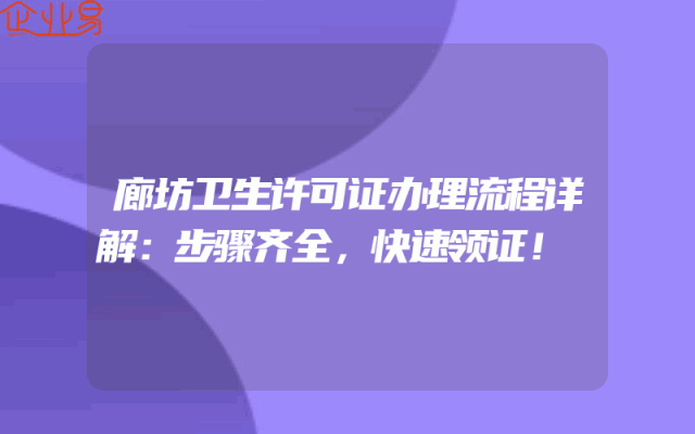 - 廊坊卫生许可证办理流程详解:步骤齐全,快速领证!