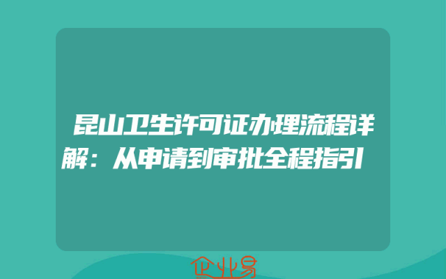 - 昆山卫生许可证办理流程详解:从申请到审批全程指引