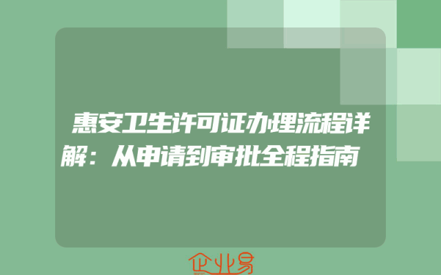 - 惠安卫生许可证办理流程详解:从申请到审批全程指南