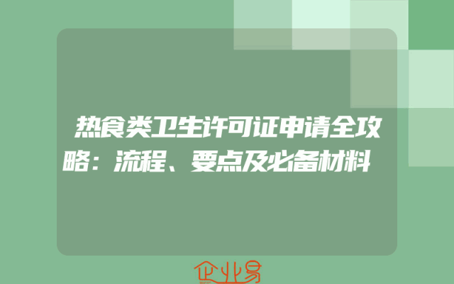 - 热食类卫生许可证申请全攻略:流程、要点及必备材料