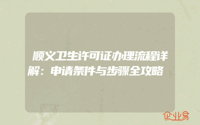 - 顺义卫生许可证办理流程详解:申请条件与步骤全攻略