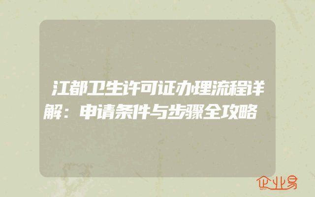 - 江都卫生许可证办理流程详解:申请条件与步骤全攻略