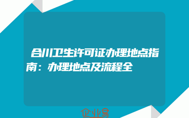 - 合川卫生许可证办理地点指南:办理地点及流程全