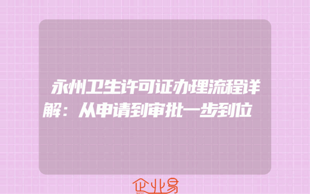 - 永州卫生许可证办理流程详解:从申请到审批一步到位