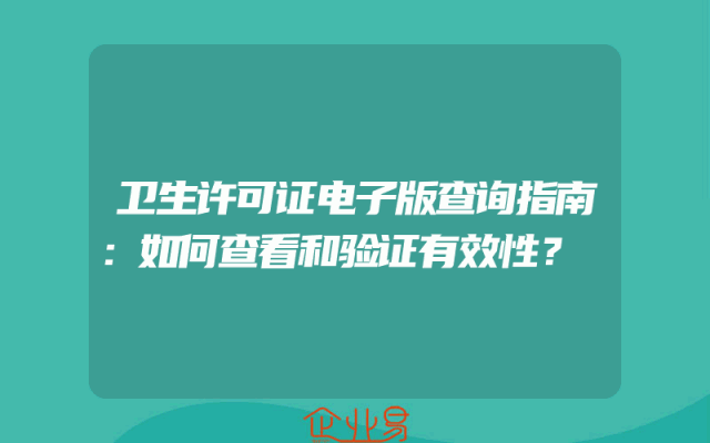 - 卫生许可证电子版查询指南:如何查看和验证有效性?