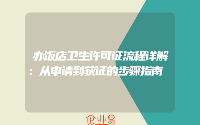 - 办饭店卫生许可证流程详解:从申请到获证的步骤指南