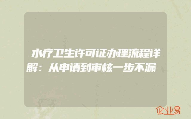 - 水疗卫生许可证办理流程详解:从申请到审核一步不漏