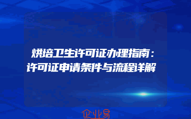 - 烘培卫生许可证办理指南:许可证申请条件与流程详解