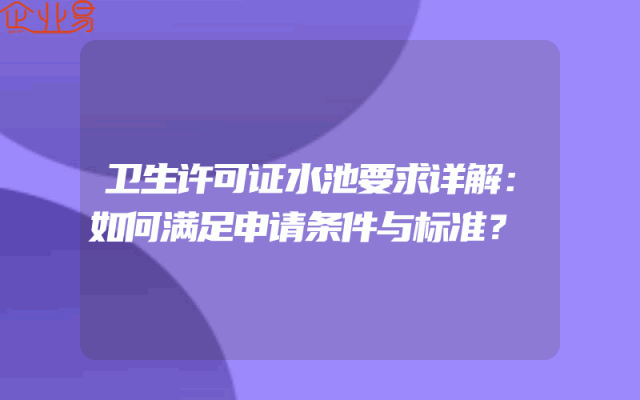 - 卫生许可证水池要求详解:如何满足申请条件与标准?