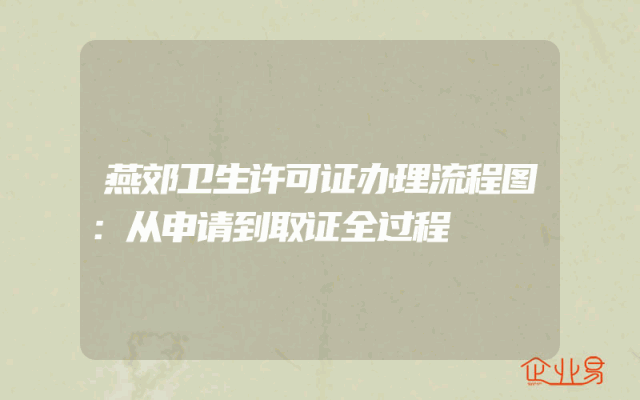 - 燕郊卫生许可证办理流程图:从申请到取证全过程