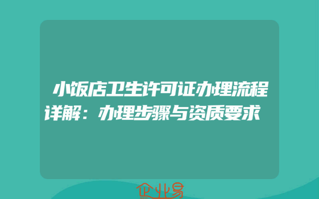 - 小饭店卫生许可证办理流程详解:办理步骤与资质要求