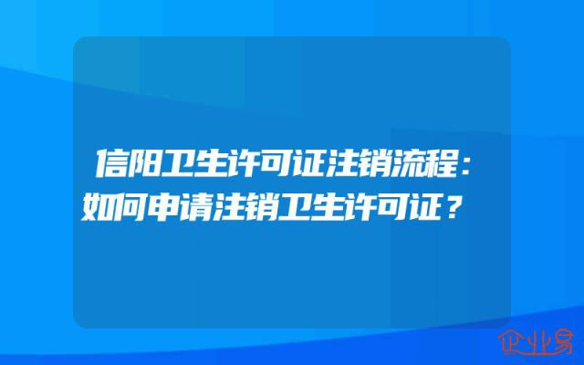 - 信阳卫生许可证注销流程:如何申请注销卫生许可证?