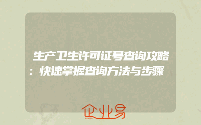 - 生产卫生许可证号查询攻略:快速掌握查询方法与步骤