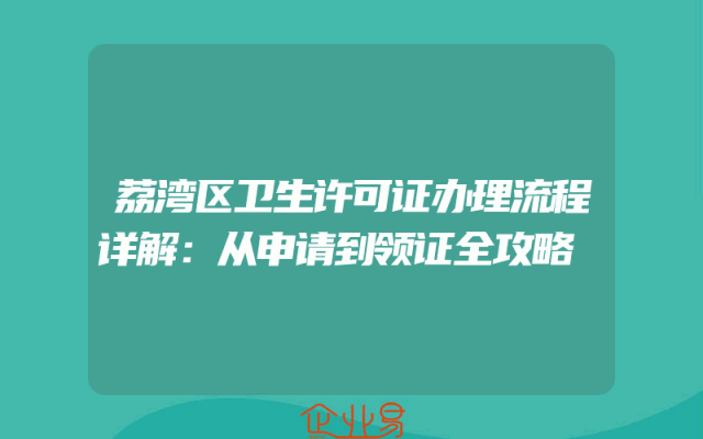 - 荔湾区卫生许可证办理流程详解:从申请到领证全攻略
